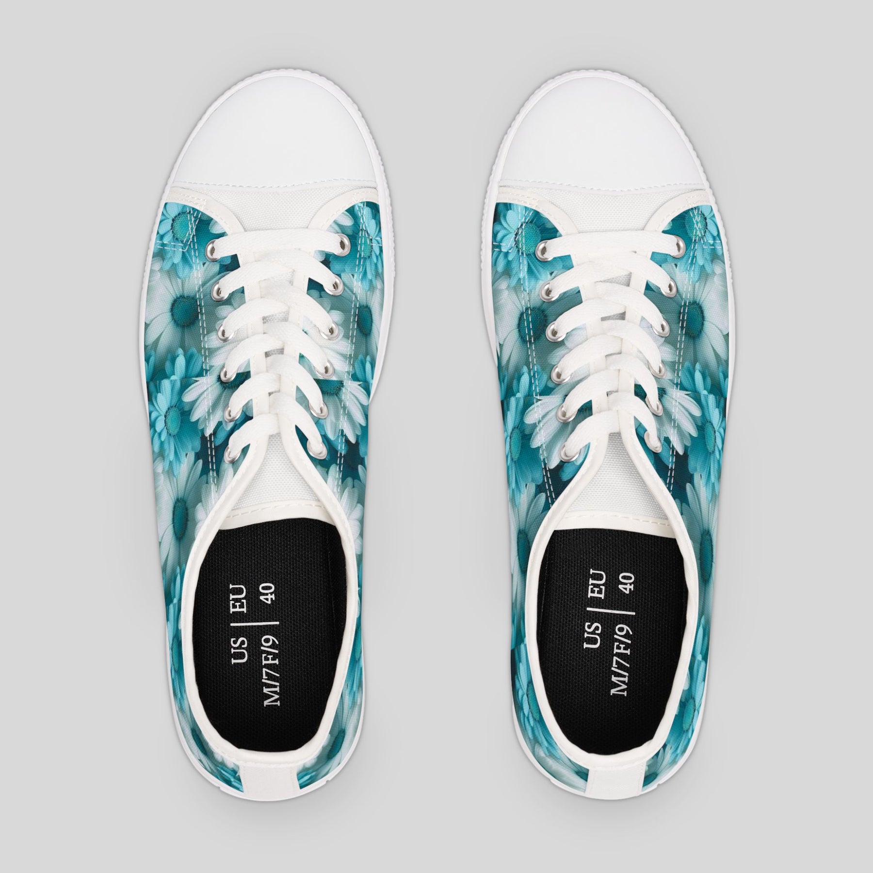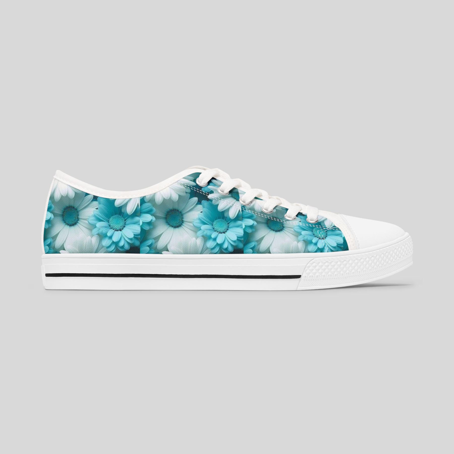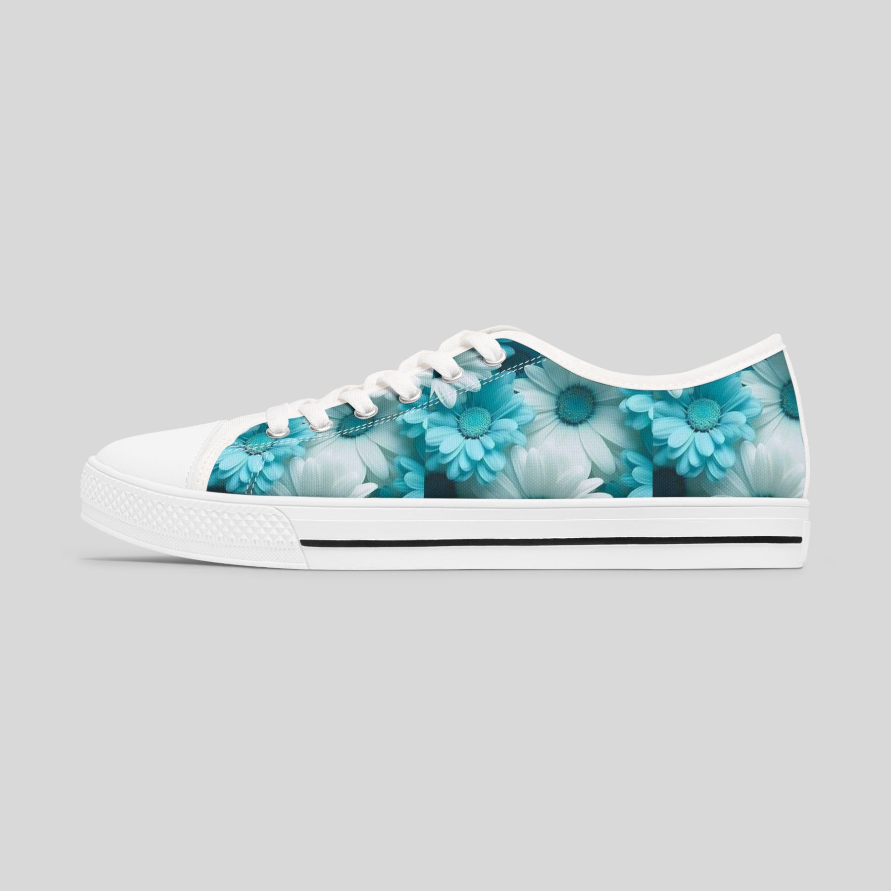 These Women's Low Top Sneakers feature a beautiful Blue Flower design, giving off a fresh and trendy vibe. Perfect for women who love floral patterns and want to add a colorful touch to their outfits. Ideal for casual wear, walking, and running. Great for spring and summer seasons.